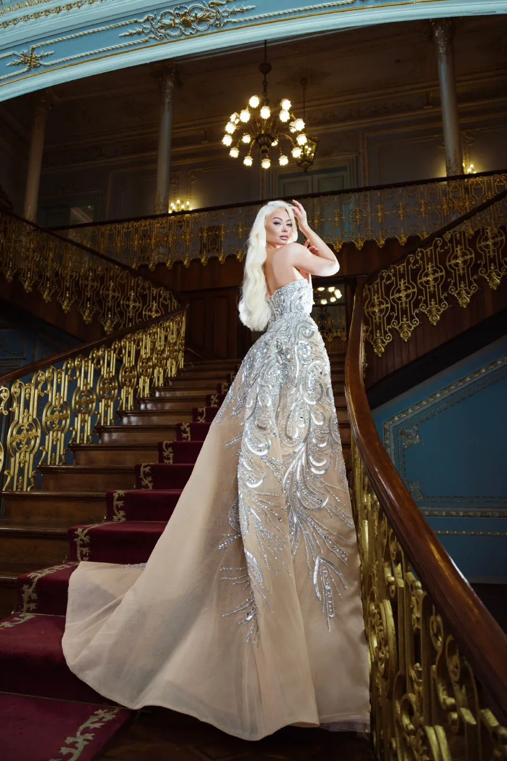 Ова не е само висока мода — ова е проглас. Смел, моќен и незаборавен, Constellation е создаден за жени кои чекорат низ светот како императорки, наменет за најгламурозните црвени теписи и најексклузивните венчавки, блескајќи како да се облечени во жива галаксија.