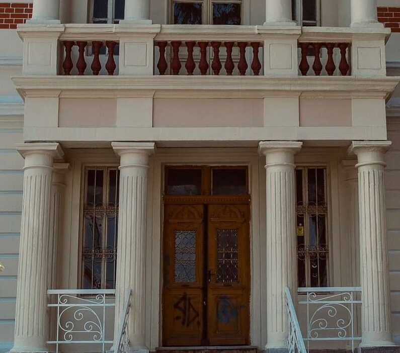 Јужната фасада, со столбови во дорски ред и галерија-колонада на првиот кат, е богато обликувана со профилирани украси околу прозорците и керамопластични розети. Овие елементи сведочат за влијанието на европската архитектонска традиција во градот, кој во тоа време бил важна административна локација во регионот.