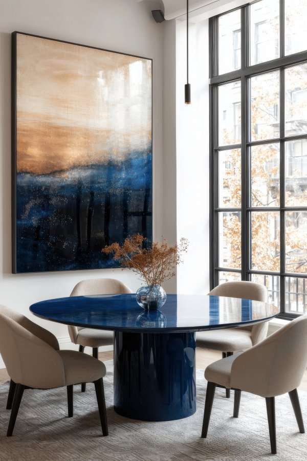 Кога просторот се уредува околу едно силно уметничко дело, резултатот е хармонична и заокружена целина. Боите, текстурите и темите од сликата се пренесуваат во мебелот, осветлувањето и деталите, создавајќи чувство на поврзаност и стилска доследност.