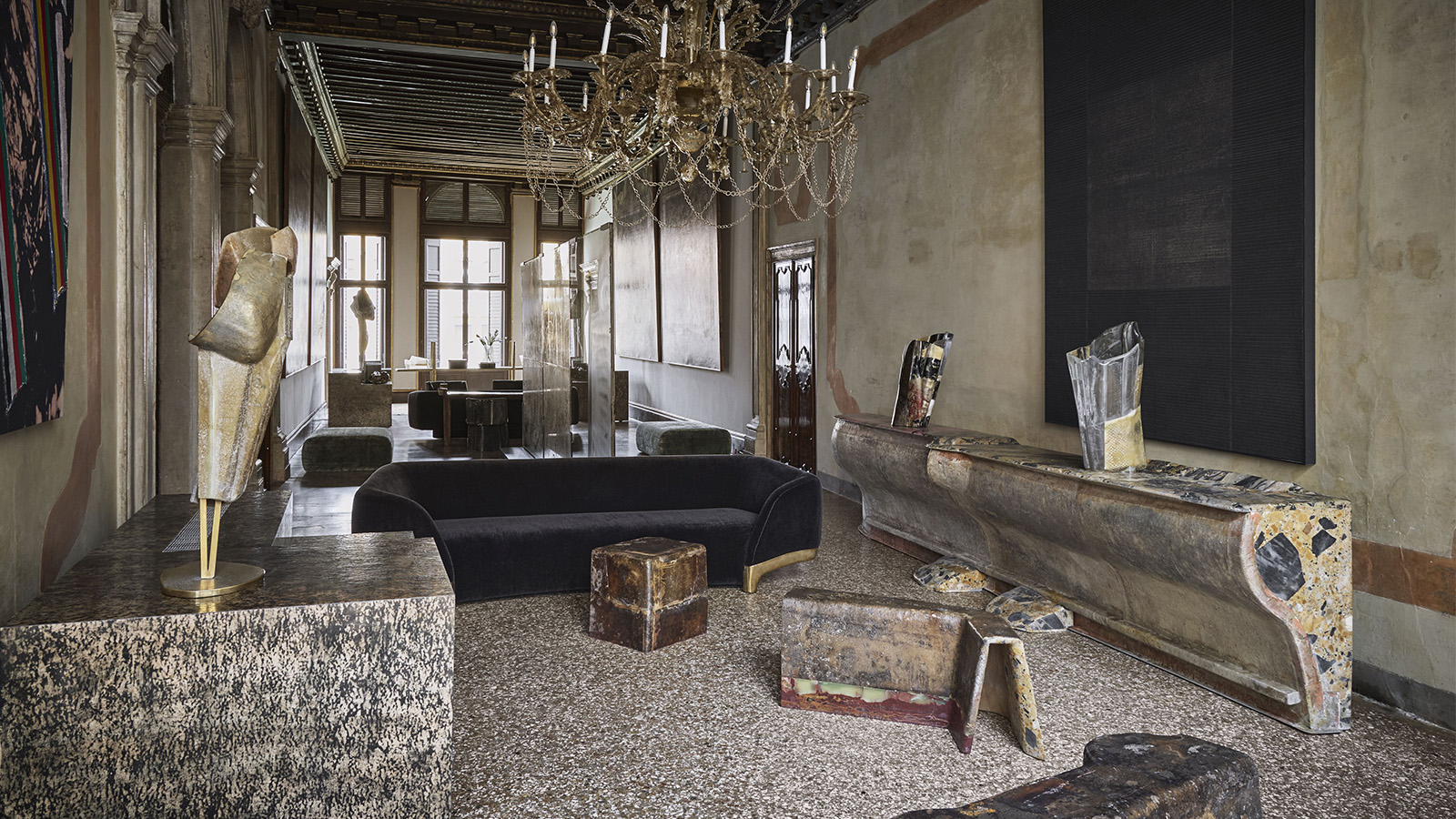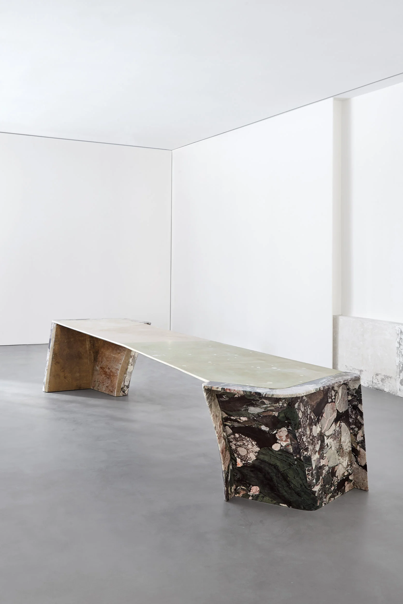 Она што веднаш го издвојува е неговиот однос кон материјалите. Кај него мермерот не е совршено исполиран симбол на класичен луксуз, туку жив материјал со траги од природата. Наместо еднолични површини, тој избира камен со силни жили, драматични шари, пукнатини и неправилности. Покрај мермерот, често користи и бронза со патина, оксидиран метал, рачно обработено стакло, смола, дрво со траги од стареење и индустриски материјали трансформирани во уметност. Токму таа комбинација создава естетика што многумина ја опишуваат како спој на раскош и руина.