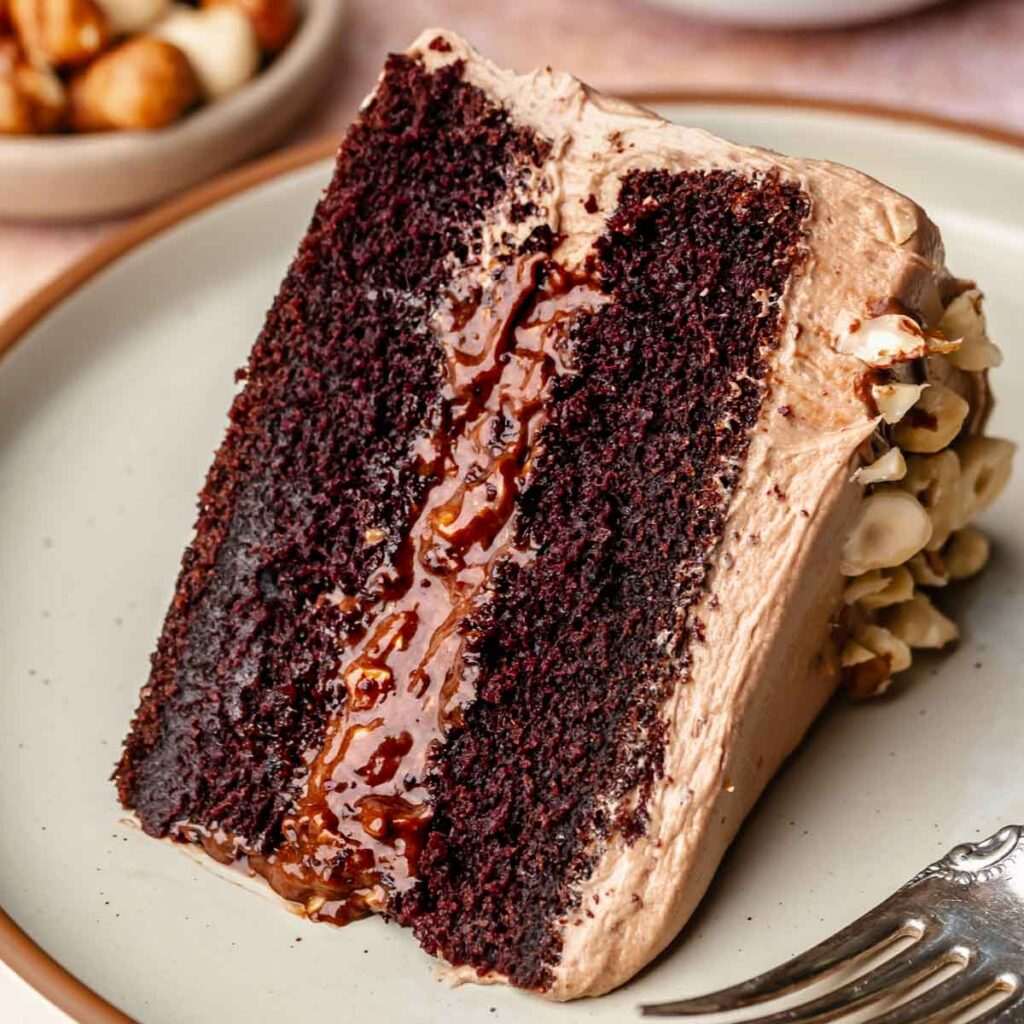 Додадете го стопениот путер, кафето, талогот од кафе и мелените лушпи од лешник. Потоа додадете го брашното, прашокот за печиво, прстофат сол и на крај иситнетите (или сомелени) лешници.Истурете ја смесата во намачкан со путер калап. Одозгора декорирајте со неколку цели или искршени лешници. Печете 30 до 40 минути, во зависност од големината на калапот. Проверете дали е готово со врвот на нож.