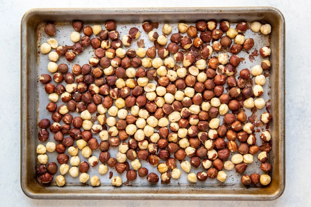 Загрејте ја рерната на 180°C и печете ги лешниците 10 минути. Потоа, со крпа истријте ги за да ја отстраните лушпата (ако не се веќе излупени) и иситнете ги. Оставете неколку цели за декорација, ако сакате. Измелете ги лушпите од лешник додека не се претворат во прав и оставете ги на страна.Во сад изматете ги јајцата со шеќерот додека смесата не побели.