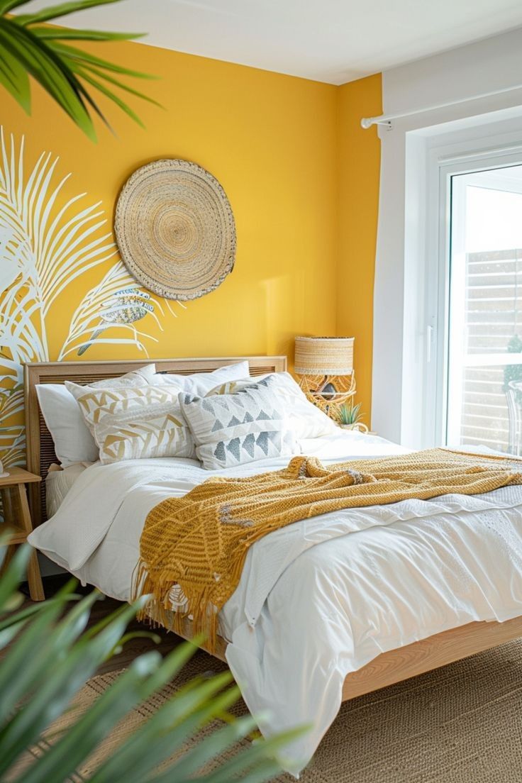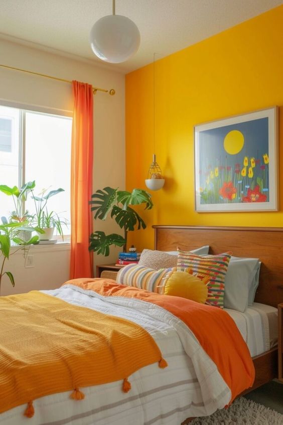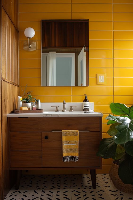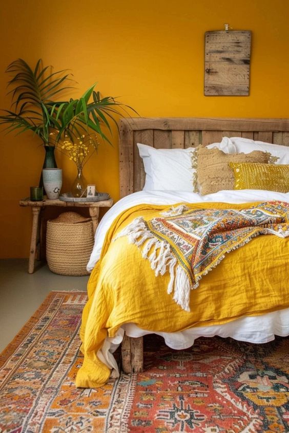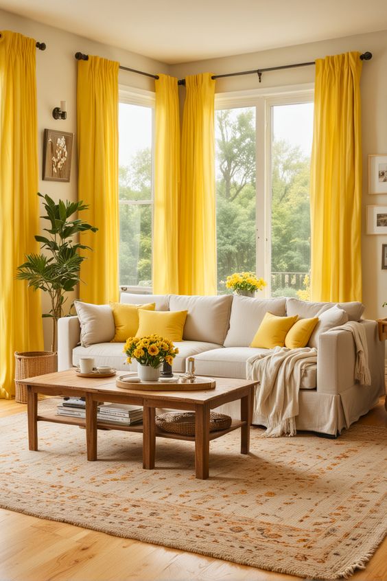 Во дневната и спалната соба можете да ги бојадисате ѕидовите или да ставите завеси во жолта боја, или пак, постелнината на креветите може да ја изберете во жолто. Во кујната, можете самите кујнски елементи да ги изработите од жолта иверка, а во бањата можете да се решите за жолти плочки.