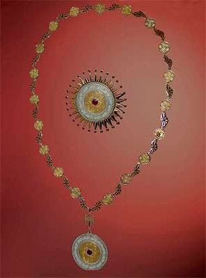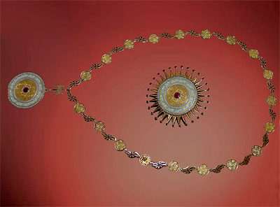 Алката што го поврзува герданот со орденскиот знак е стилизација на гордиевиот (хераклов) јазол – симбол на нераскинлива сила и судбинска поврзаност, инспириран и од орнаментиката на Болоњскиот псалтир. Самиот гердан, долг 80 сантиметри, е составен од алки со наизменична форма, внимателно димензионирани за да создадат визуелна рамнотежа.